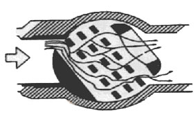 在調(diào)節(jié)閥的選型中,另一個(gè)重要的要考慮的問題是噪聲及汽蝕。特別是介質(zhì)為高溫高壓的蒸汽。就調(diào)節(jié)閥來說,前后差壓愈大,介質(zhì)流速就愈大;流速愈大,則產(chǎn)生的噪音就愈大;同時(shí)對(duì)閥芯和閥內(nèi)件的破壞也愈大。噪聲產(chǎn)生后,不僅嚴(yán)重?fù)p傷閥芯和閥座,在嚴(yán)重的情況下,還能對(duì)閥的下游工藝管道引起共振,嚴(yán)重影響工藝的正常生產(chǎn):另外噪音對(duì)工人的人身健康也產(chǎn)生極大的危害,依據(jù)國家《工業(yè)企業(yè)噪聲衛(wèi)生標(biāo)準(zhǔn)》中的第五、六條的要求,每個(gè)工作日接觸噪聲8小時(shí),允許噪聲為85dBA以下,每個(gè)工作日接觸噪聲小于1小時(shí),噪聲最大不超過115dBA.除此之外,伴隨著噪音的產(chǎn)生,還會(huì)有氣蝕、閃蒸等一系列問題伴隨出現(xiàn),這些情況的出現(xiàn),將嚴(yán)重影響調(diào)節(jié)閥的工作質(zhì)量及穩(wěn)定性,更會(huì)大大地縮短此閥的使用壽命。 在Neles的計(jì)算書中,對(duì)噪聲有一欄專項(xiàng)計(jì)算,由于Neles所選的Top5系列的調(diào)節(jié)閥內(nèi)件采用了很好的降噪及消除汽蝕內(nèi)件,即Q—Trim降噪件(Neles的專利),該Q—Trim內(nèi)件的結(jié)構(gòu)如下(圖一):