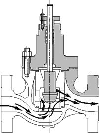 (1)從結(jié)構(gòu)上看:凡流路復(fù)雜的閥,防堵功能都差,這類閥就是直行程類的調(diào)節(jié)閥。以 單座閥為例(見下圖一),介質(zhì)從水平方向流進(jìn)閥后,經(jīng)垂直節(jié)流,又再水平流出。可以 看出,這種轉(zhuǎn)彎倒拐的復(fù)雜流路,會(huì)產(chǎn)生不少的漩渦死區(qū),給介質(zhì)提供了可沉淀的空間,所 以極易堵卡;從套筒與閥塞的配合上看,兩者閥的間隙小,稍有不干凈的東西就會(huì)造成卡堵。再看老式單座閥和雙座閥,其下閥蓋的導(dǎo)向處就是一個(gè)介質(zhì)沉淀的死區(qū),沉淀的東西易不斷 堆積,導(dǎo)致閥芯往下運(yùn)動(dòng)十分困難,出現(xiàn)閥關(guān)不到位等堵卡現(xiàn)象(見圖二) | ||||||