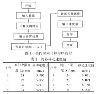 由于采用手工方法計算工作量很大 , 所以采用VB 6 1 0 編程語言計算 ( 圖3)。計算得到關閥時間t =3 1 62s 。閥芯移動速度值如表 1 所示。5 結語