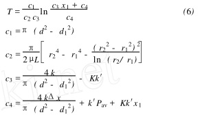在實際流動過程中 , 閥門內部流道的流動狀態是三維的 , 由于控制裝置采用內外腔套層的結構形式 , 其內部的泄流間隙很小 , 可近似認為其流動狀態為層流 ( 圖2)。則由不可壓縮流體本構方程—廣義牛頓內摩擦定律和納維斯 - 斯托克斯方程。可以得到環形間隙中流體的流量 Q 為