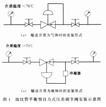 四、波紋管平衡型自力式壓差調節閥的選用和安裝
