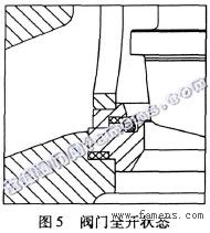 圖5為閥門全開狀態,彈性軟密封環恢復彈性。